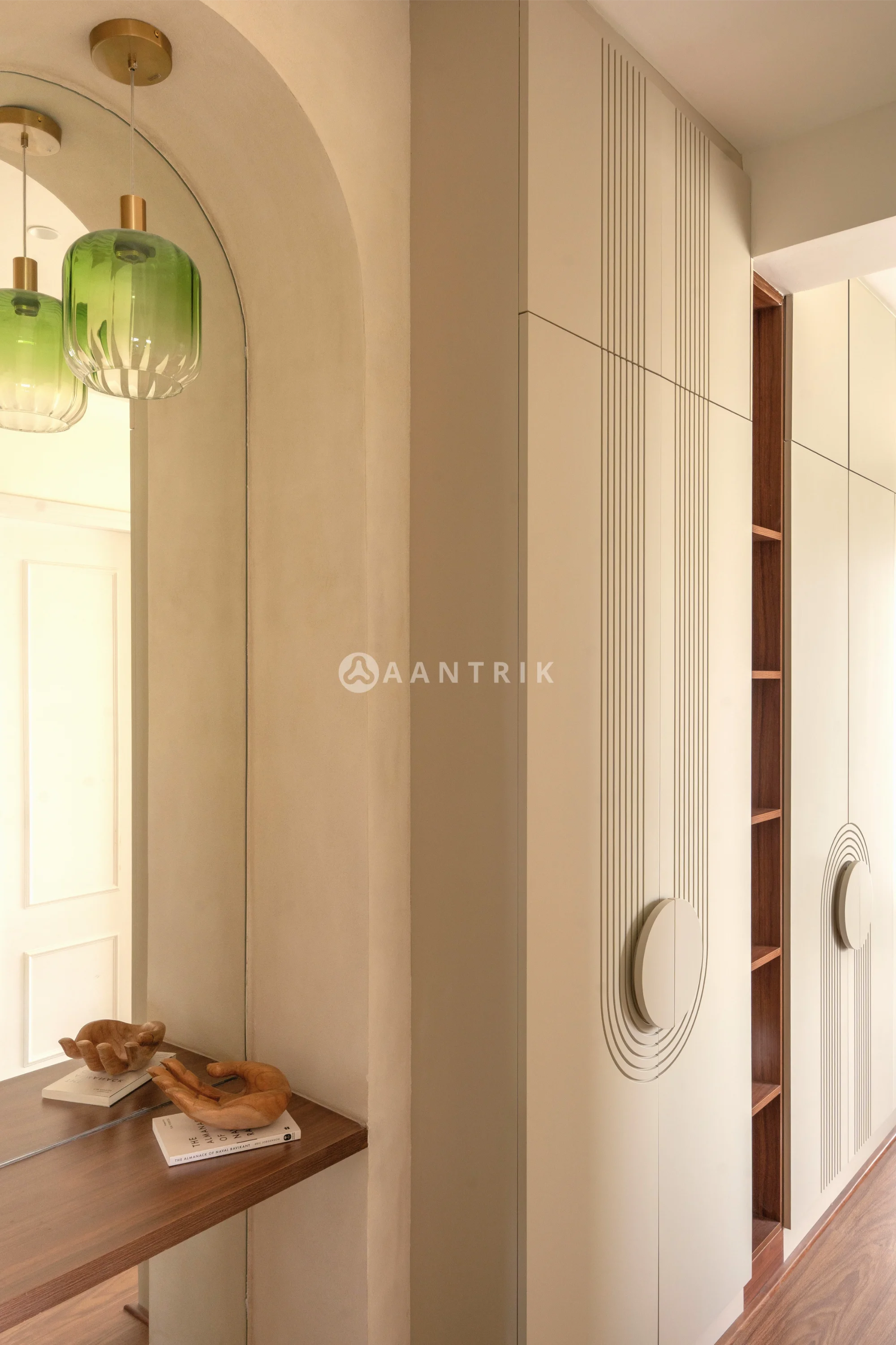 The Blue Door is a refined expression of modern Indian living — where soft curves, muted neutrals, and deep blues come together to create a home that feels both grounded and elegant. Designed by Aantrik Interiors , this residence celebrates balance — between warmth and sophistication, modernity and nostalgia.