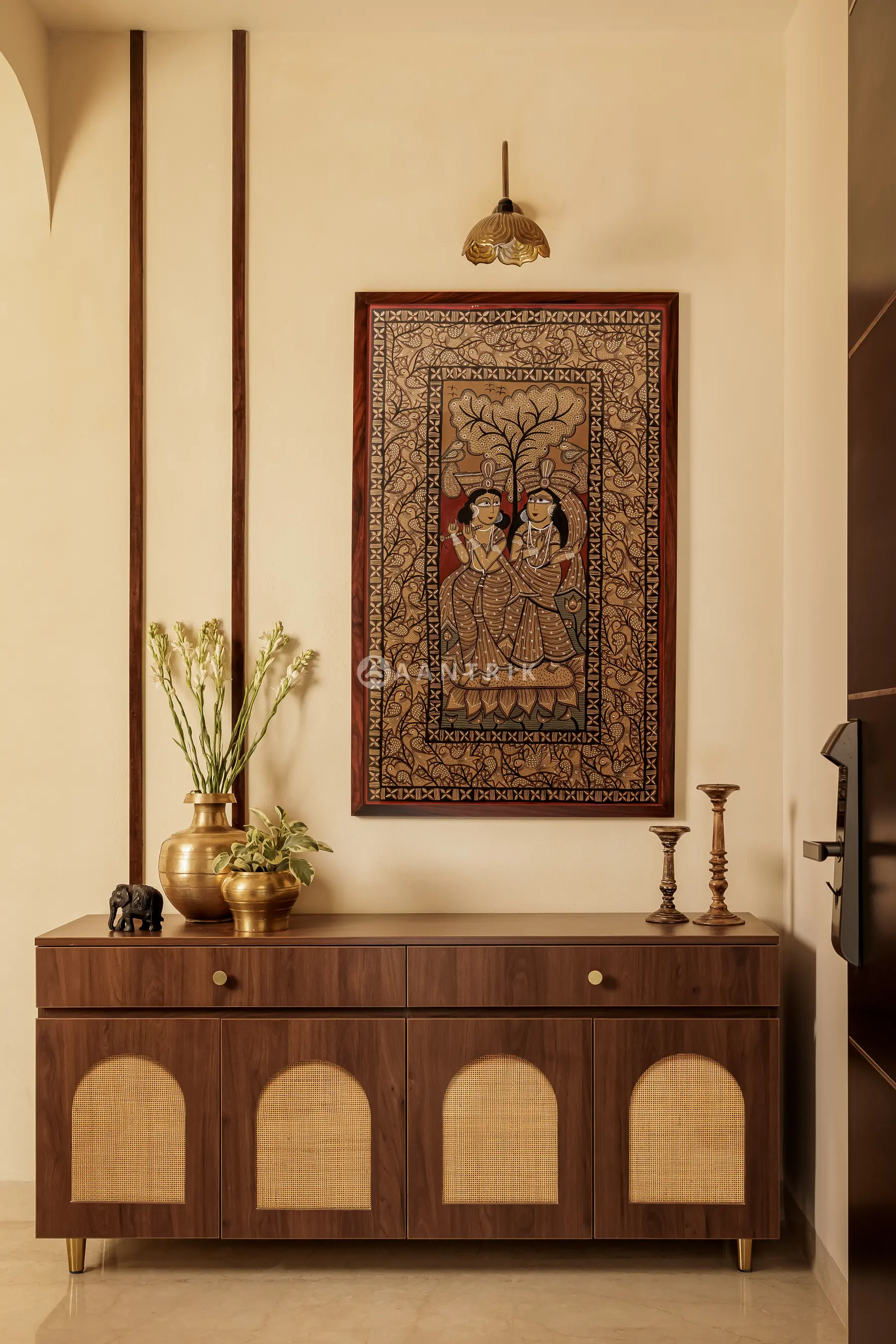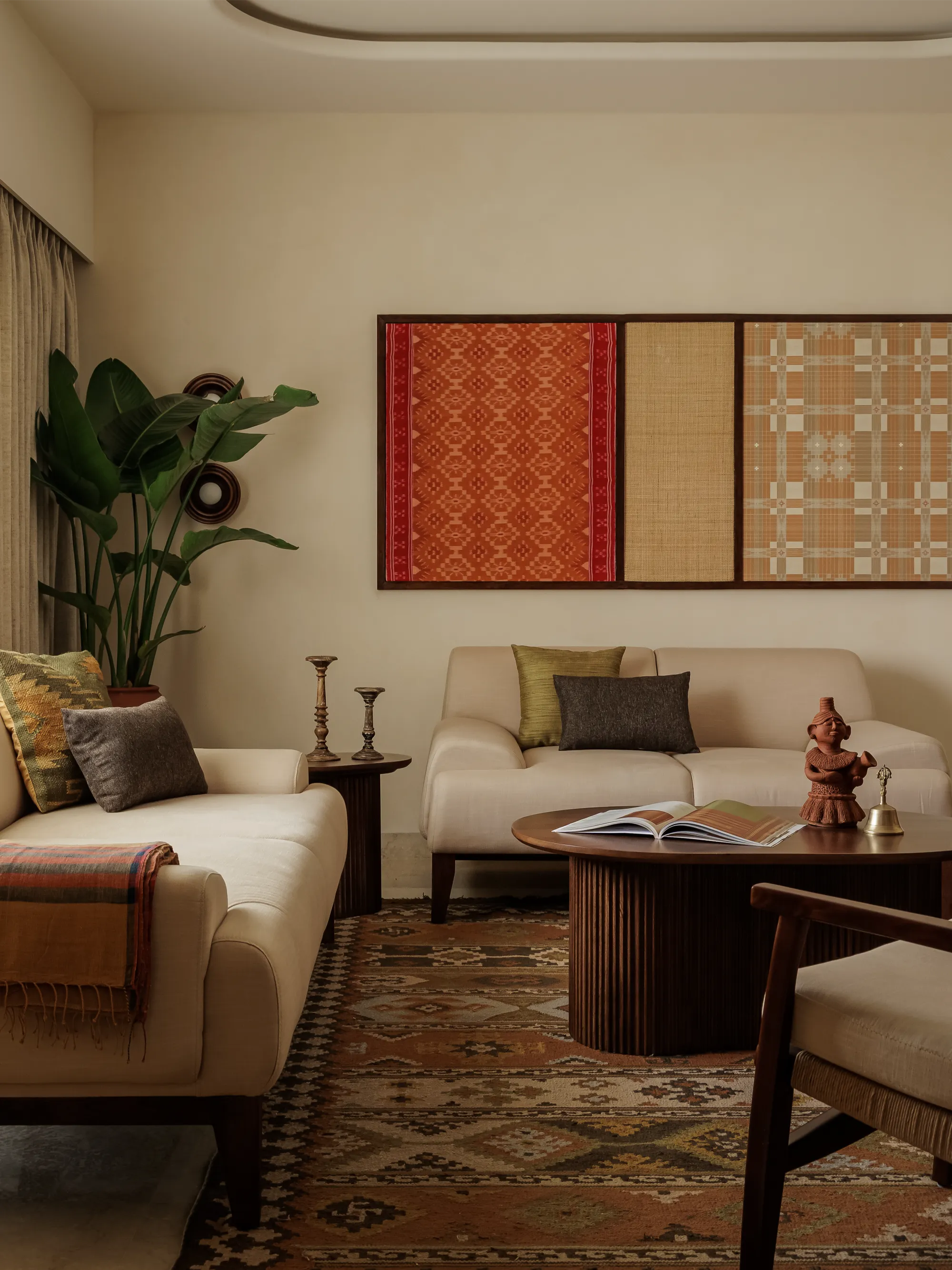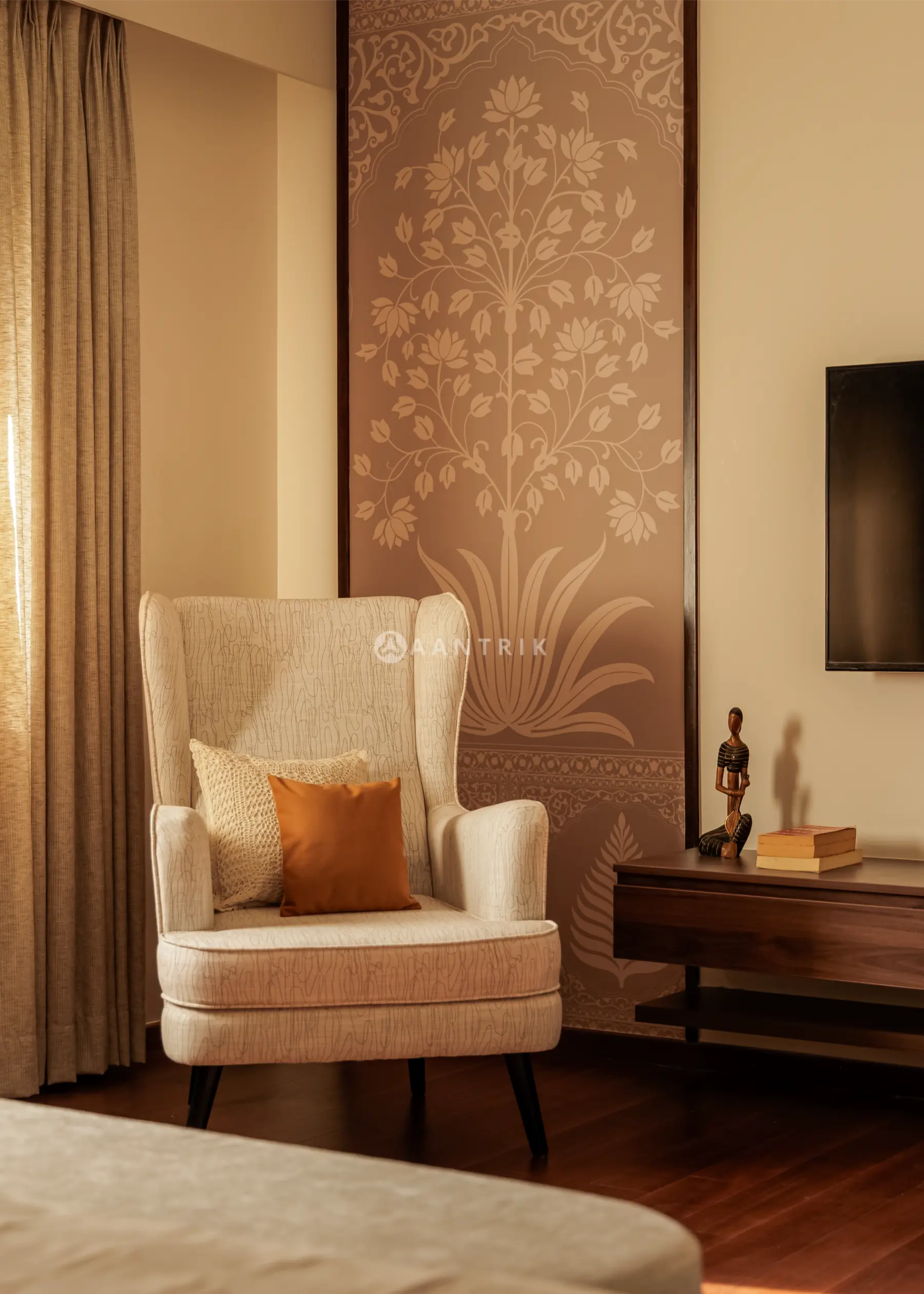 At Adarsh Sanctuary, we’ve woven a "Modern Heritage" narrative that marries traditional Indian soul with contemporary refinement. The palette is a curated dance of earthy terracotta, deep wood, and refreshing sage green, punctuated by tactile textures like hand-woven textiles and rhythmic fluting. From the intricate Kalamkari art to the sleek arched motifs, every detail is designed to feel both timeless and trend-forward.