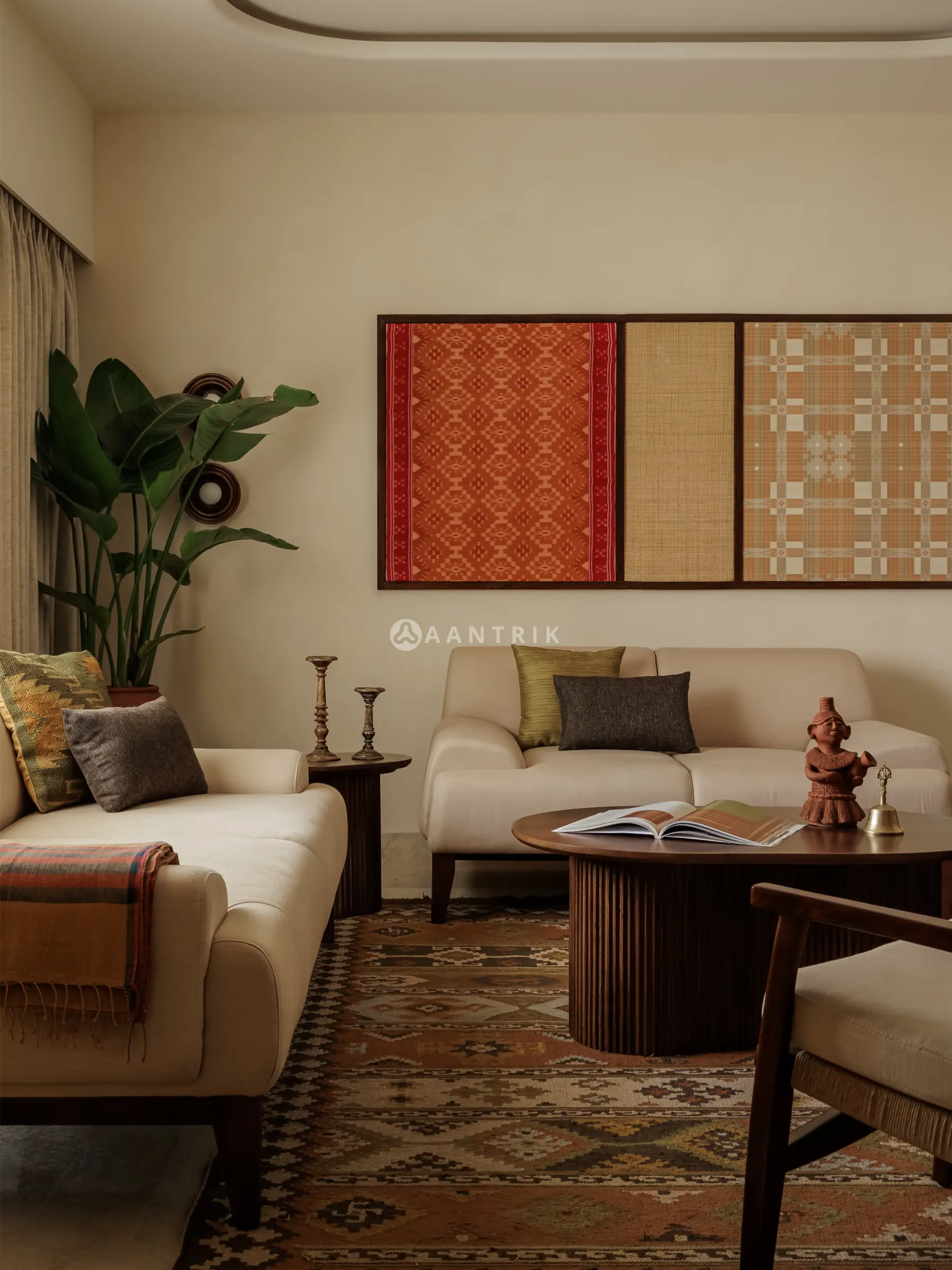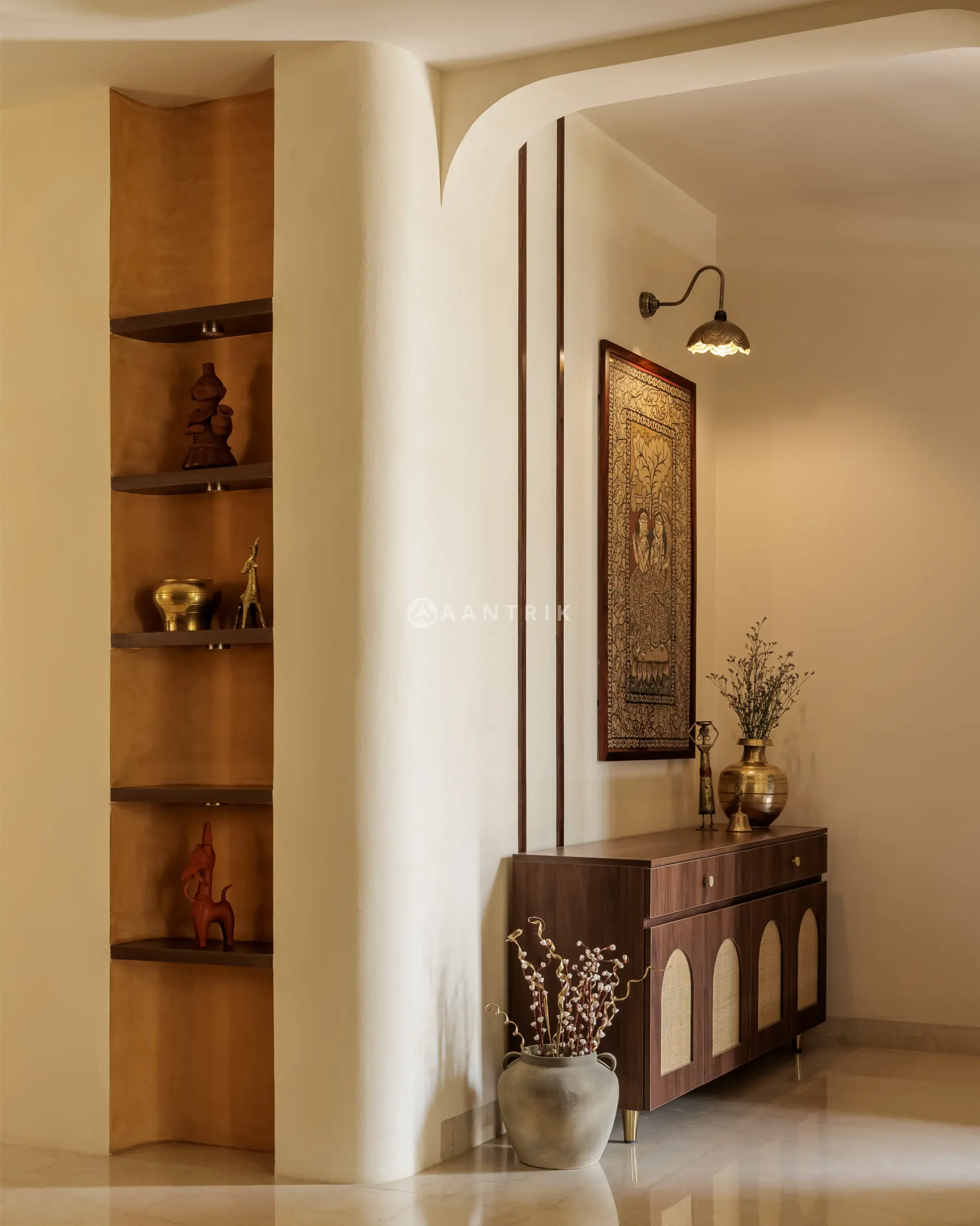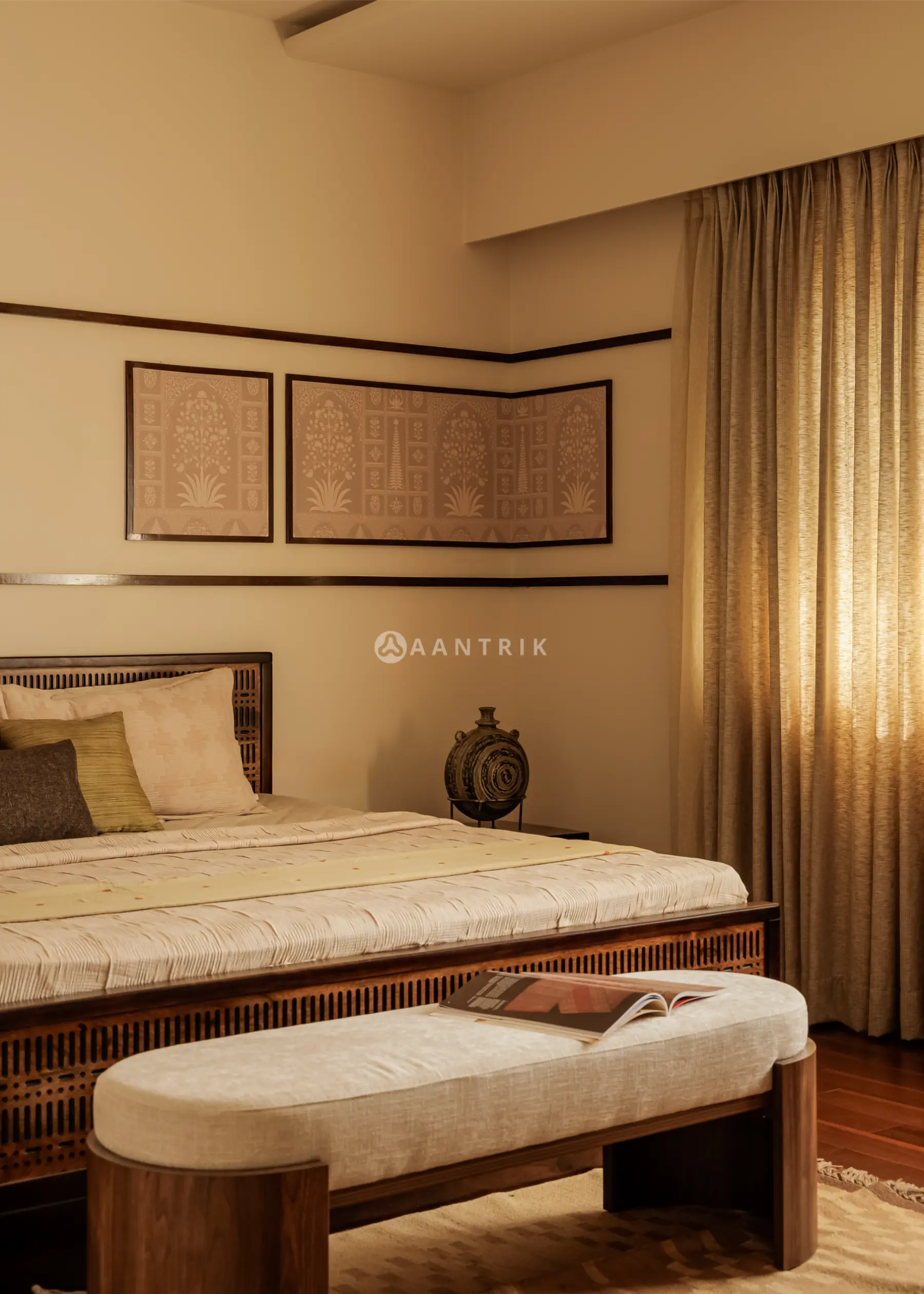 At Adarsh Sanctuary, we’ve woven a "Modern Heritage" narrative that marries traditional Indian soul with contemporary refinement. The palette is a curated dance of earthy terracotta, deep wood, and refreshing sage green, punctuated by tactile textures like hand-woven textiles and rhythmic fluting. From the intricate Kalamkari art to the sleek arched motifs, every detail is designed to feel both timeless and trend-forward.